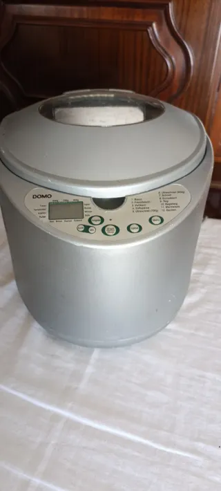 Panificadora Domo en color plateado. Cuenta con pantalla digital y varios programas. Está todo en alemán, no tengo libro de instrucciones ni la caja - Programas preestablecidos. - Pantalla LCD. - Diseño moderno.