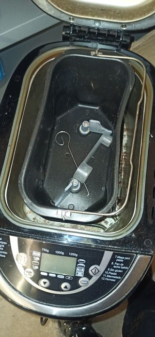En perfecto funcionamiento. Casi nueva. La vendo con molde de revestimiento de cerámica y todos los accesorios necesarios. Tiene diferentes programas para elaborar pan y distintos postres; también uno que se puede personalizar.