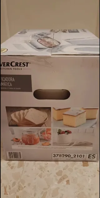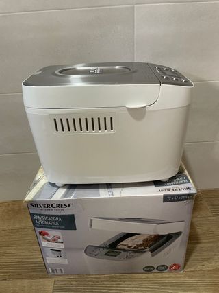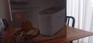 Panificadora SilverCrest automática, prácticamente nueva. Ideal para preparar pan en casa de forma fácil y cómoda. Fue comprada en lidl por 90€ y se ha usado solo dos veces con pan sin gluten. - Programable con varias opciones de horneado. - Incluye recipiente para la masa y pala amasadora. - Diseño moderno y elegante en color blanco y gris