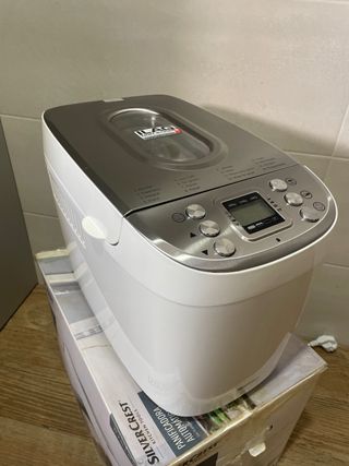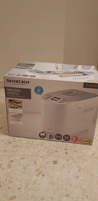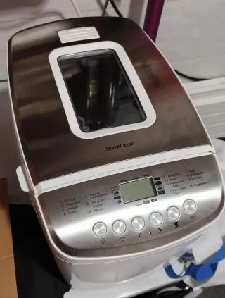 Panificadora Silvercrest en buen estado. Incluye todos los accesorios. - 16 programas de pan, incluyendo opciones para pan integral, dulce y bajo en carbohidratos. - Recubrimiento antiadherente. - Capacidad para 1000g o 1250g de pan.