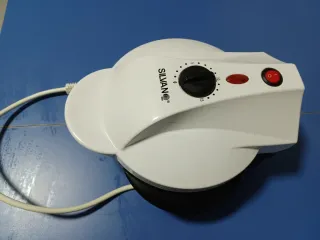 Práctica waflera para preparar gofres o waffles en casa. Su diseño ovalado y acabado en acero inoxidable la hacen un electrodoméstico funcional y estético. - Superficie antiadherente. - Indicador luminoso de encendido y listo. - Cable de alimentación incluido. Se usó en una ocasión, prácticamente nueva!.
