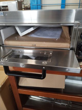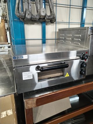 Horno de 1 puesta nuevo a estrenar de cristal eléctrico en acero inoxidable con superficie de cocción con puedra refactaria. Dispone de temporizador, visor de cristal y regulador de temperatura con termostato hasya 350oC. Medida: 415x400x120mm (interior) Medida: 585x550x280mm Potencia: 2000w Su precio es de 265€ + IVA Disponemos de varias unidades. Si estás interesad@, envíanos un mensaje desde wallapop Solo recogida en tienda Respondemos de lunes a jueves de 8:00 a 14:00 y de 16:00 a 18:30 y viernes de 8:00 a 14:00