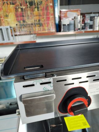 Plancha de cocina de acero inoxidable, ideal para uso profesional o doméstico. - Superficie de cocción amplia. - Construcción robusta en acero inoxidable. - Bandeja recogegrasas. - Encendido electrónico.