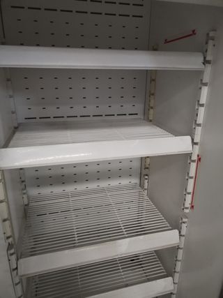 Vitrina expositora ideal para negocios de comida, bares o cafeterías. Tiene buena capacidad, estructura sólida y puertas inferiores para almacenaje. El termostato está roto y habría que reemplazarlo y le faltan las placas de vidrio para abrir a el interior de la vitrina , por lo demás en buen estado general. PRECIO NEGOCIABLE