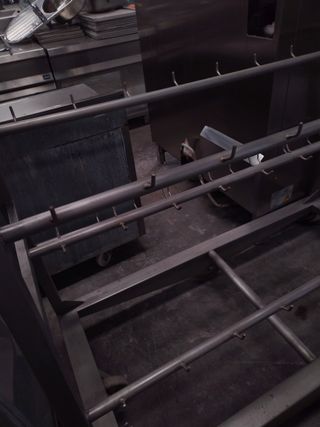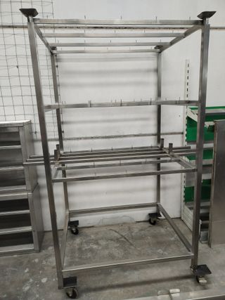 Carro para embutidos de forma cuadrada en acero inoxidable con ruedas. Medida: 219 de alto x 120 x 100 Solo disponemos de 1 en stock Si estás interesad@, envíanos un mensaje desde wallapop Solo recogida en tienda Respondemos de lunes a jueves de 8:00 a 14:00 y de 16:00 a 18:30 y viernes de 8:00 a 14:00