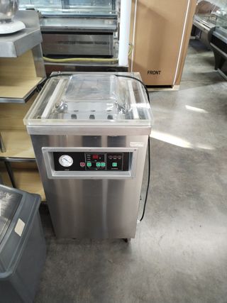 Envasadora al vacío de segunda mano de Eutron modelo DZ-400 con dos barras de soldadura 400+400mm, ancho de la soldadura de 10mm, ciclos por minuto de 1-2 ciclos y bomba al vacío XD-020. Medida de la cámara: 440x420x65mm Medida: 490x540x890mm Voltaje: AC230V Potencia: 1200w Disponemos de una unidad en stock Su precio es de 750€ Si estás interesad@, envíanos un mensaje desdes wallapop Solo recogida en tienda Respondemos de lunes a jueves de 8:00 a 14:00 y de 16:00 a 18:30h. Viernes de 8:00 a 14:00h