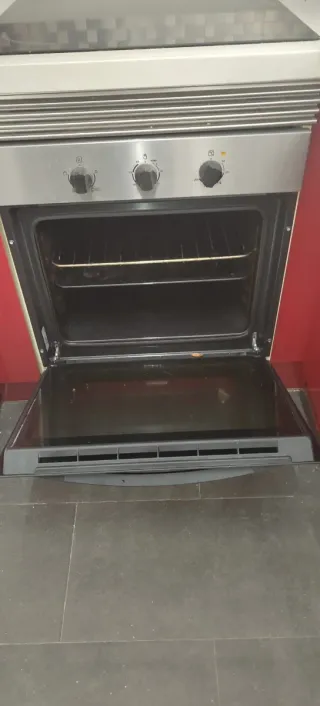 Horno Zanussi en perfecto estado de funcionamiento. - Diseño moderno y funcional. - Acabado en acero inoxidable y cristal negro. - Mandos giratorios para control de temperatura y funciones.