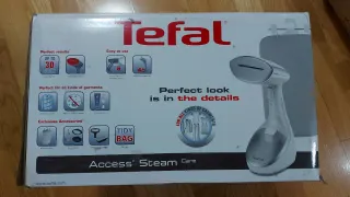 Plancha de vapor vertical Tefal Access Steam Care, ideal para un planchado rápido y eficaz. - Potencia de vapor de hasta 30 g/min. - Perfecta para todo tipo de prendas. - Incluye accesorios exclusivos como cepillo para tejidos y bolsa de almacenaje. - Fácil de usar y transportar.