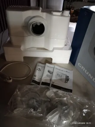 Estación trituradora/elevadora automática Grundfos Sololift 2 WC-1. Se encuentra en perfecto estado, nueva y desembalada para fotografías. Se entrega con toda la documentación y embalaje original. - Modelo: WC-1 - Código: 97775314 - Potencia: 620 W - Voltaje: 220-240 V - Frecuencia: 50 Hz - Protección IP44 - Peso: 9 Kg - Elevación: 8.5mts.