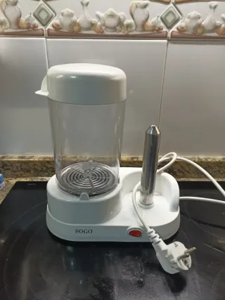 Máquina para preparar perritos calientes de la marca SOGO. Su diseño es blanco y transparente. - Incluye varilla para calentar el pan de perritos. - Recipiente para hacer los perritos al vapor. - Tapa superior. - Base con interruptor. Entrega Pedrezuela Alcobendas Torrelaguna. Hago envíos. Muy poco uso