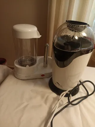Conjunto de electrodomésticos para preparar palomitas y perritos calientes. - Máquina de palomitas con tapa transparente. - Dispensador para perritos calientes con varilla. - Diseño en blanco y negro. Entrega Pedrezuela Alcobendas Torrelaguna. Hago envíos. Buen estado, poco uso.