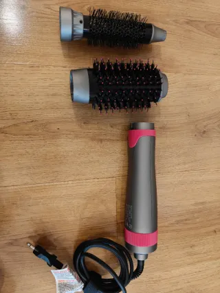 Spazzola Asciugacapelli 2 in 1 con Testine Intercambiabili - Grigio/Rosa Descrizione Modella, asciuga e volumizza i tuoi capelli in un solo passaggio! 💁♀️✨ Vendo per inutilizzo questo styler ad aria calda multifunzione in ottime condizioni. È lo strumento perfetto per chi vuole una piega da salone fatta in casa in pochi minuti, riducendo l'effetto crespo grazie alla tecnologia a ioni. Caratteristiche principali: Design 2 in 1: Include la base motorizzata e due testine intercambiabili (una spazzola tonda per il volume e una spazzola piatta/ovale per lisciare). Potenza: 1000W per un'asciugatura rapida ed efficace. Impostazioni regol