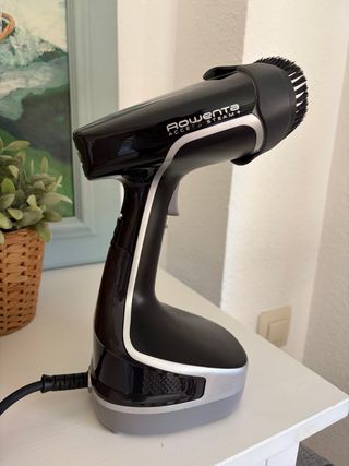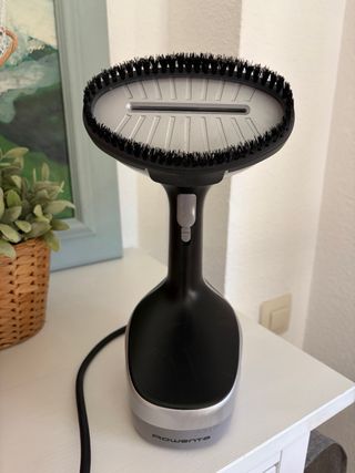 Plancha de vapor vertical Rowenta en color negro y detalles plateados. Ideal para alisar prendas colgadas. - Mango ergonómico. - Cepillo accesorio incluido. - Base estable. - deposito 190ml - 2000W - cable 3m - no incluye la caja ya que la tire cuando la compre La vendo porque ya no plancho la ropa, pero esta nueva..