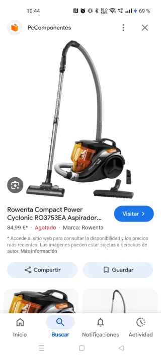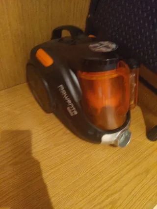Aspiradora Rowenta Compact Power Cyclonic RO3753EA en color negro y naranja. Ideal para mantener tu hogar limpio. - Diseño compacto y ligero. - Tecnología Cyclonic para una succión potente. - Incluye accesorios para diferentes superficies.