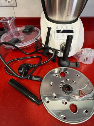Robot de cocina versátil para preparar diversas recetas. - Incluye accesorios para diferentes funciones. - Diseño compacto y moderno. - Fácil de limpiar.
