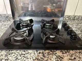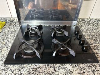 Se vende placa de 4 fuegos de cocina diferentes tamaños, eléctrica de gas. Placa de cristal. Comprada hace 3 años. La quitamos para poner vitro. Marca TEKA