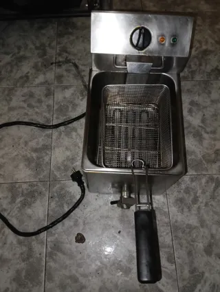 Freidora eléctrica de acero inoxidable, ideal para preparar tus comidas favoritas. - Cubeta extraíble. - Cesta con asa. - Termostato regulable. ( Se escuchan ofertas )