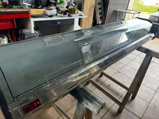 Nevera de barra de bar fabricada en acero inoxidable. Ideal para mantener bebidas y alimentos fríos. - Diseño alargado y funcional. - Superficie de acero pulido. - Rejilla de ventilación en un lateral.