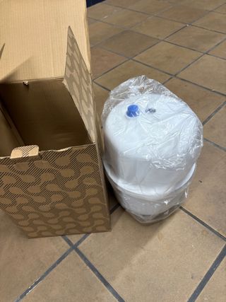Depósito para sistema de ósmosis inversa. - Color blanco. - Tapa azul.