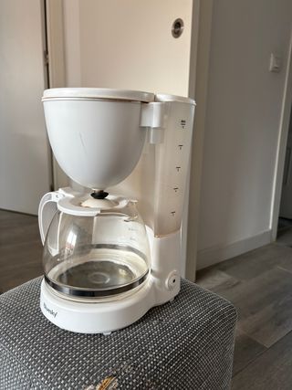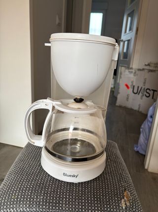 Cafetera de goteo de color blanco, marca Bluesky. - Jarra de cristal. - Indicador de nivel de agua. - Capacidad máxima de 10 tazas.