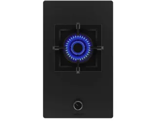 Placa de gas con superficie de cristal negro. - Encendido electrónico. - Parrillas de hierro fundido. - Válvula de seguridad.