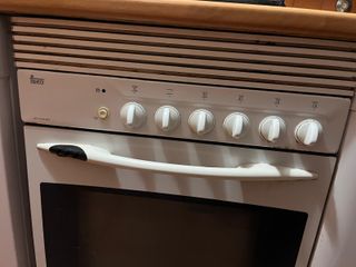 Horno de cocina de la marca Teka, modelo HT 494 ME. - Color blanco. - Panel de control con mandos. - Puerta con asa. La placa es de 4 fuegos a gas. Oportunidad. Nos vamos a deshacer de ello por reforma de vivienda.