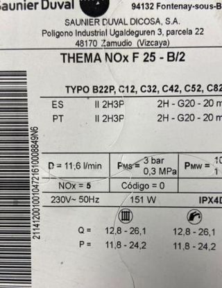 REPUESTOS DE CALDERA SAUNIER THEMA NOX F25