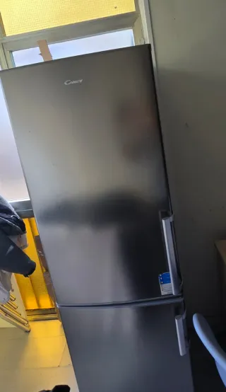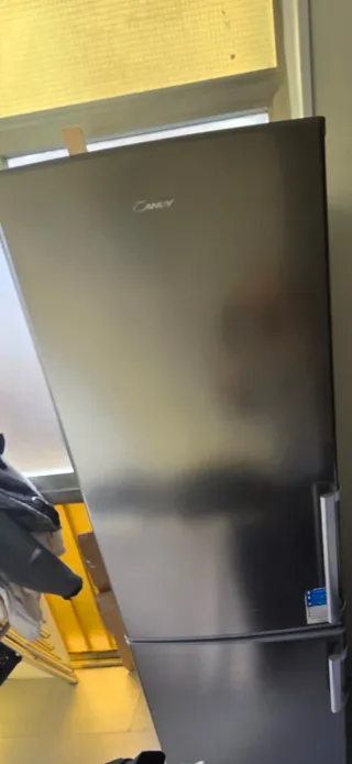 Frigorífico Candy de color plateado, con dos puertas. - Diseño moderno. - Tiradores integrados. Placa electrónica dañada. Presupuesto de reparación entre 50€ y 100€ funcionaba perfectamente hasta hace una semana. Compresor bien, gas bien, sin fugas.