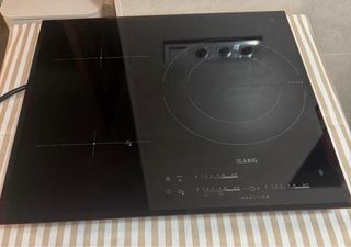 Placa de inducción AEG de cristal negro. - Diseño moderno y elegante. - Superficie lisa y fácil de limpiar. Antiguedad 4 años. Uso pocos días (en vacaciones). Tiene un pequeñito roto en la esquina izquierda.