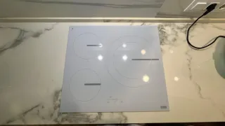 Placa de inducción en color blanco, completamente nueva y sin usar. Vendo por no ser del tamaño de mi cocina. Medidas: 58 x 52 x 5,8cm Peso: 8,8 kg Anchura del corte: 56cm Profundidad del corte: 49 cm - Diseño moderno y elegante. - Acabado liso y fácil de limpiar. Algo negociable