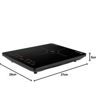 Potencia 2000W Diseño ultrafino Pantalla táctil con 6 funciones predefinidias. 9 niveles de calentamiento. Regulador de temperatura desde 80 hasta 240 grados. Temporizador hasta 60 minutos, botones ON/OFF y botón de bloqueo. Protección contra sobrecalentamiento y diseño compacto exterior color negro. Avisador acústico Exclusiva para menaje de inducción