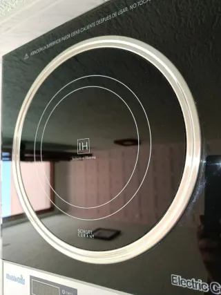 Placa de inducción portátil con control de micro-ordenador. Ideal para cocinar en cualquier lugar. - Múltiples funciones preestablecidas: Sopa, Arroz, Leche, Café, Freír, Pescado, BBQ, Grill. - Control de tiempo: 1 minuto, 10 minutos. - Control de temperatura: 200°C, 250°C, 270°C. - Potencia: 1800w - Botones de encendido/apagado, suma y resta. - Indicador de calor residual. la teníamos para ir de camping . vitroceramica