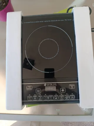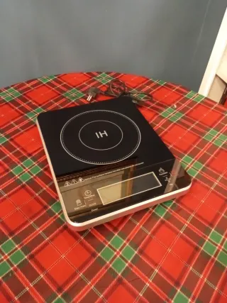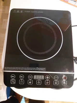 Placa de inducción marca Quilive, con potencia de 2000W. Es compacta y fácil de transportar. La compré para la casa del pueblo pero justo después me regalaron una vitrocerámica y se ha quedado en la caja nueva sin usar. - Temporizador de hasta 180 minutos. - Botones de control soft-touch. - Función de seguridad para niños. - Compatible con recipientes de 16 a 24 cm.