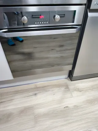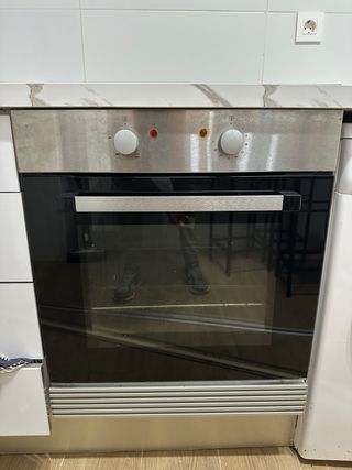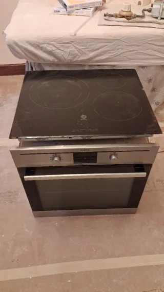 Se vende horno con placa vitrocerámica. - Horno con ventilador. - Vitrocerámica de inducción. - placa filo metálico alrededor de la vitro de 57 cm *50 cm - horno 59 cm de ancho por 62 cm de alto -tiene un embellecedor metálico entre la encimera y el horno de 64cm largo*4 cm de alto En el perfil también hay frigorífico, lavadora y lavavajillas