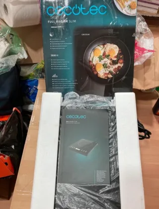Vendo 2 inducciones eléctricas y portátiles de la marca Cecotec, concretamente el modelo Full Crystal Onyx, de color negro y de 2000 Watios de potencia Están en perfecto estado y casi nuevas. Usadas en dos ocasiones. Vendo por no usar Compradas por capricho hace unos 3 años para un emprendimiento de cocina que no salió adelante Preferible venta presencial pero se aceptan envíos Se entregan juntos o separados con caja y contenido original Precio Individual: 35€ Precio Conjunto: 60€