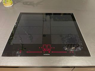 Placa Inducción Siemens EH675MR17E - 135€ Vendo placa de inducción Siemens modelo EH675MR17E por cambio de cocina. Características: - Zona FlexInducción 20x40 cm (para ollas grandes o múltiples recipientes) - Zona gigante 28 cm - Control táctil touchSlider - Función Sprint (calentamiento ultrarrápido) - Seguridad infantil y apagado automático Estado: Funcionamiento perfecto. Único detalle: pequeña mordida en esquina inferior izquierda (ver fotos). Entrega: Solo recogida en persona. Precio: 135€