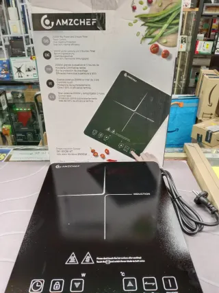 Placa de inducción AMZCHEF de un solo fuego. Ideal para tu cocina. - Potencia de 2000W. - Temporizador de hasta 3 horas. - Control táctil. - Protección contra sobrecalentamiento. - Eficiencia térmica superior al 90%. - Color negro.