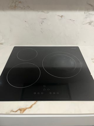 Placa de vitrocerámica de inducción. - Diseño moderno y elegante. - Superficie lisa y fácil de limpiar. - Controles táctiles intuitivos. Estado: nueva, 3 semanas de uso. Motivo de la venta: en el lateral izquiero una pequeña mueca (se puede observar en la fotografías adjuntas). Reformamos la cocina y los electrodomésticos son nuevos por ello la vendemos, ya que queremos tenerlo todo en buen estado. ahora, hemos vuelto a comprar el mismo modelo porque estamos muy contentos com esta vitrocerámica. precio real: 202€ en Leroy Merlin