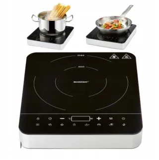 Placa de inducción portátil con superficie de vitrocerámica. - Diseño moderno y compacto. - Panel de control táctil. - Indicador digital de potencia/temperatura.
