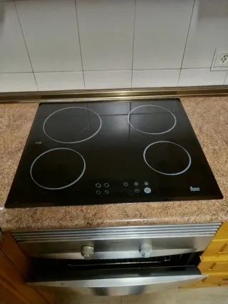 Placa vitrocerámica Fagor con cuatro zonas de cocción. Horno Teka Ambos funcionando correctamente. Son independientes cada uno con sus mandos. Aunque los vendo juntos. Se venden para reformar vivienda. Tienes que desmontarlos tú. Es facil