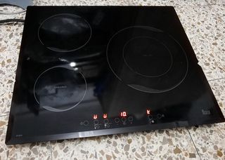 Vendo placa de inducción Apelson de tres zonas. Está en buen estado, aunque presenta algunas marcas de uso superficiales en la superficie de cristal. - Marca: Apelson - Zonas de cocción: 3 - Tipo: Inducción - Modelo: AIT3602 - Potencia: 5.8 kw - Dimensiones: 59*6*52