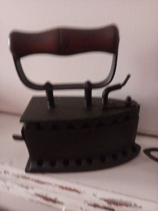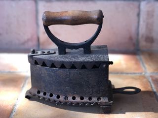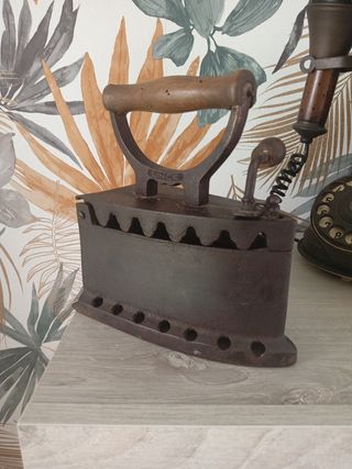 Preciosa plancha antigua de hierro, con mango de madera. Ideal para coleccionistas. - Aspecto antiguo y desgastado, que le da un encanto único. - Mango de madera en buen estado. - Perfecta para decoración o colección.
