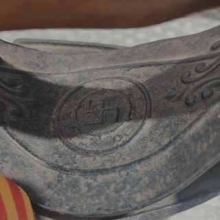 Plancha antigua de carbón, de origen alemán y de la época de la Segunda Guerra Mundial. III Reich. - Fabricada en hierro fundido. - Asa de madera. - Diseño robusto y clásico.