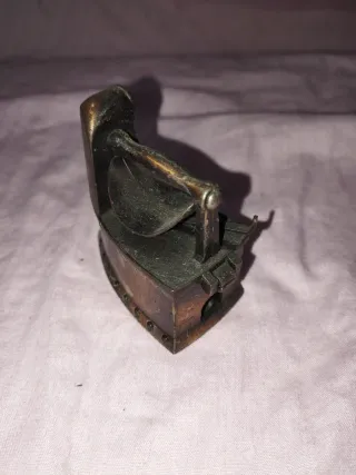 Plancha antigua de hierro para carbón, miniatura de PlayMe 919 ideal para coleccionistas o decoración. - Material: Hierro fundido. - Diseño clásico con mango. - Base plana y robusta.