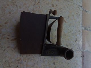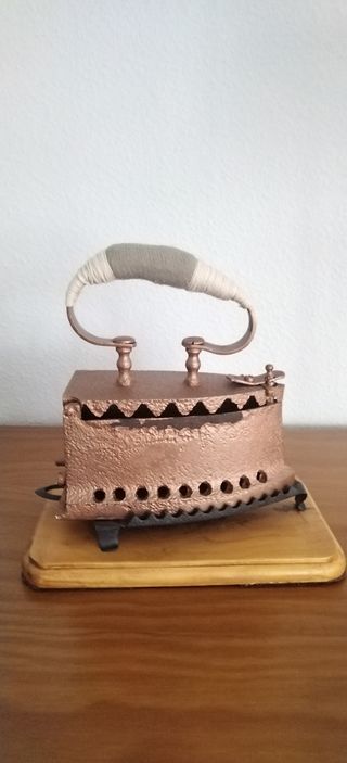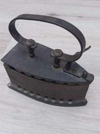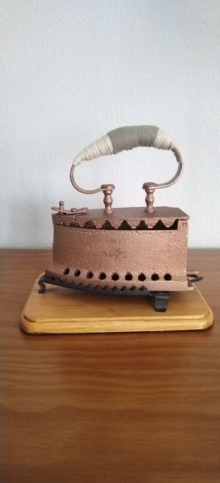 Pieza de colección: plancha antigua de carbón fabricada en hierro. Incluye su reposa plancha. - Material: Hierro. - Diseño vintage.