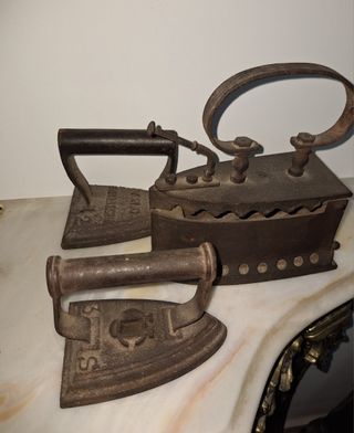 Planchas antiguas de hierro, las pequeñas 15€ cada una y la grande de carbón 25€. Se vende por separado o juego entero 50€