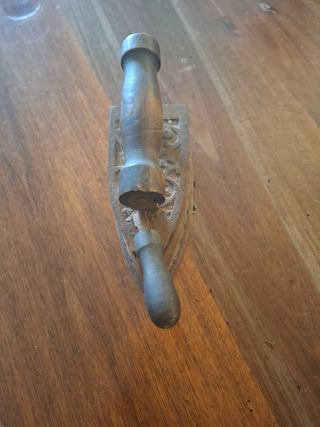 Vendo plancha de hierro forjado antigua, ideal para coleccionistas o decoración vintage. - Material: Hierro forjado. - Mango: Madera. - Diseño: Decorado con motivos ornamentales.