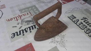 Plancha de hierro antigua, ideal para coleccionistas o decoración. Mide 8,5x15x8. - Material: Hierro fundido. - Diseño clásico y robusto.