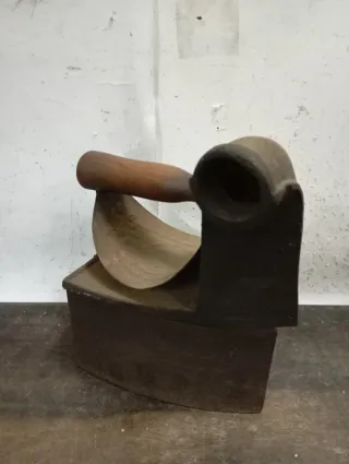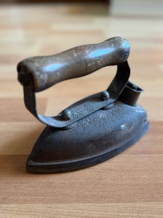 Plancha antigua de hierro, ideal para coleccionistas o decoración. - Fabricada en hierro fundido. - Mango de madera. - Diseño clásico.