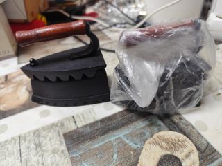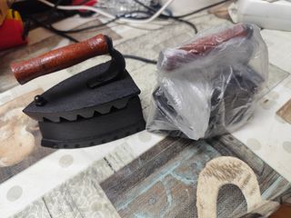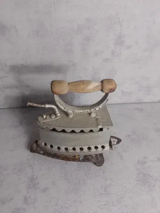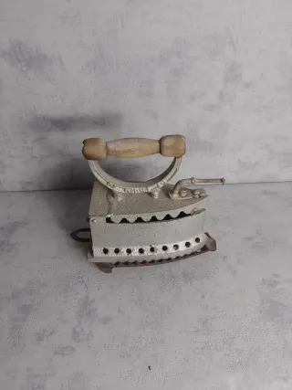 Plancha de hierro fundido, ideal para coleccionistas o decoración. - Mango de madera. - Compartimento para carbón.